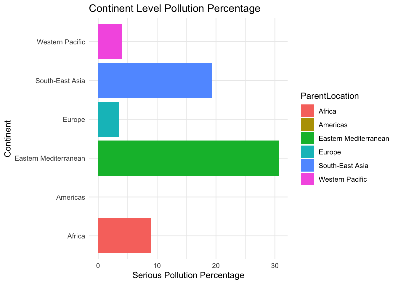 These plots shows that the our continent analysis makes sense since countries with the best and worst air quality corresponds with the continent distribution.